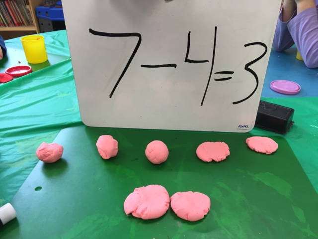 My students love to play this game. I write a subtraction problem on a whiteboard and they smash the play dough balls to find the difference. This is great practice with subtraction as well as fine motor development.